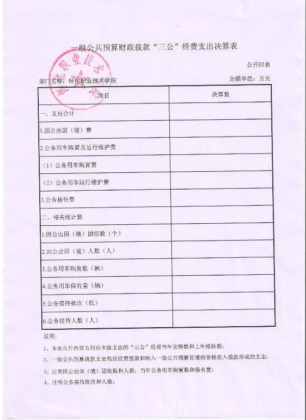 怀化职业技术学院2015年度部门决算公开说明