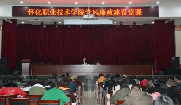 12月4日下午,我院请来怀化市纪委党风政风监督室主任肖海在大会议室为全体教职工上了一堂生动、深刻的党风廉政建设党课。