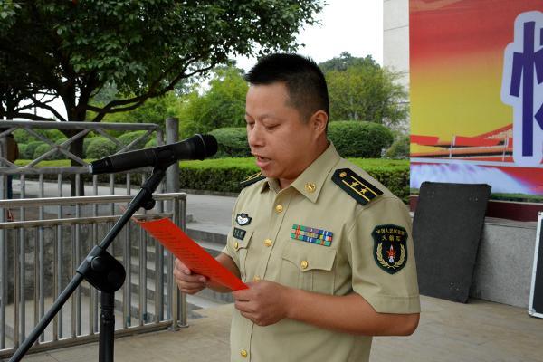 在奏唱国歌,行注目礼之后,邬副书记做出动员致词。在讲话中,邬副书记代表学院向各位新同学的到来表示热烈的欢迎和诚挚的祝贺!向一直以来支持我院军训工作的96324部队全体官兵表示衷心的感谢并致以崇高的敬意!邬副书记还表示,今年恰逢红军长征胜利80周年,在这样背景下进行此次军训,意义尤其深刻,也希望同学们能够居安思危,牢固树立国防意识;艰苦训练,在军事训练中增长才干;严守纪律,一切行动听指挥。