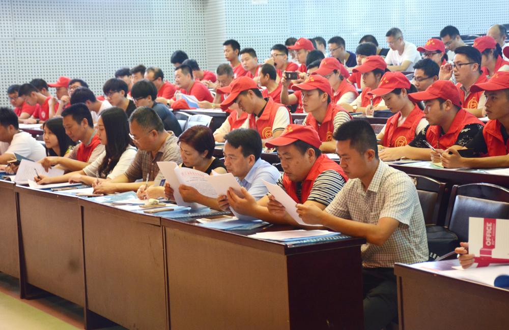 志愿者们认真学习业务培训内容